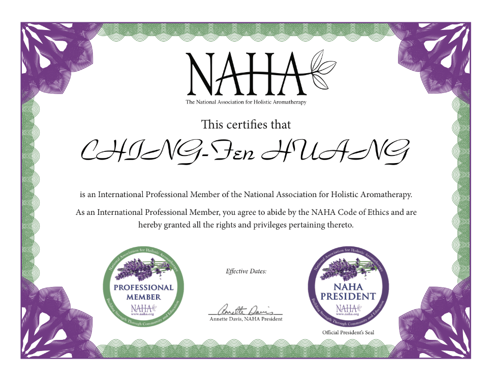 | ◎ | 美國NAHA 芳療協會高階芳療師 |