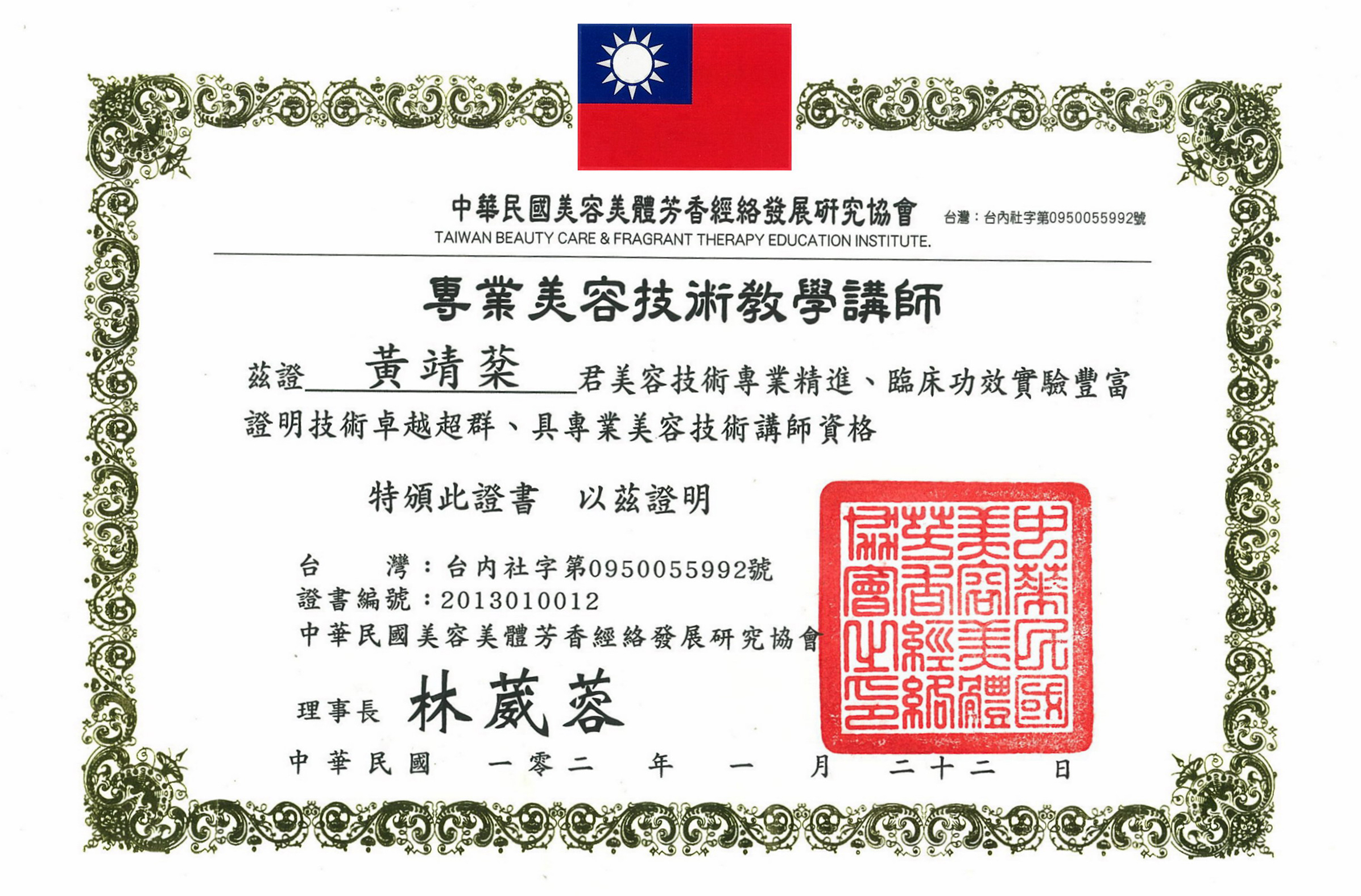 | ◎ | 兩岸三地專業美容技術教學講師 2017-2019 中華多元教育學會-青少年EQ行 第6班-11班 心靈精油單元工作坊講師 |
